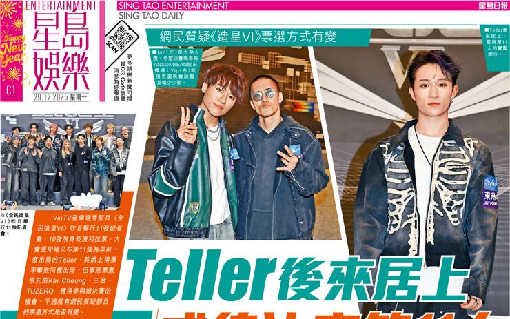 Teller 後來居上 成總決賽第11人 網民質疑《造星VI》票選方式有變