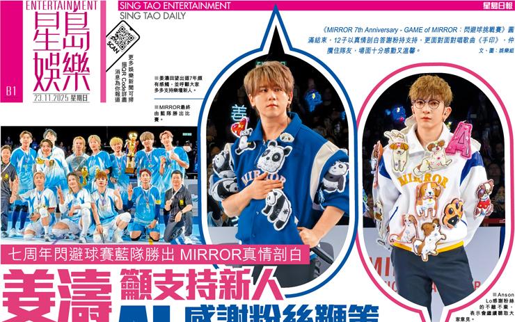 姜濤籲支持新人 AL感謝粉絲鞭策 七周年閃避球賽藍隊勝出 MIRROR真情剖白