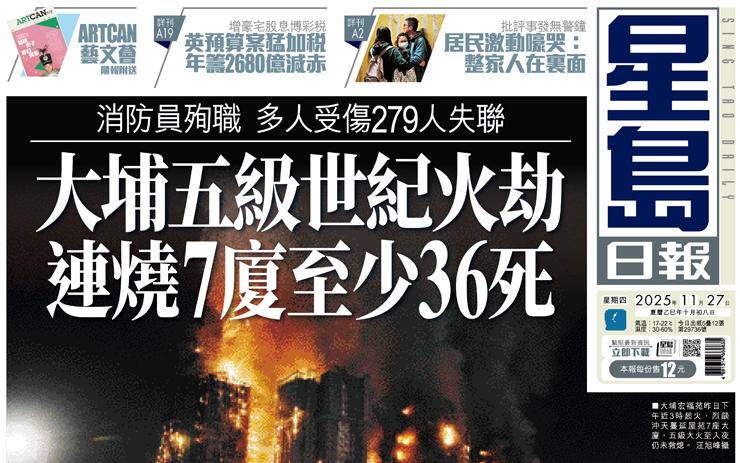 大埔五級世紀火劫 連燒7廈至少36死 消防員殉職 多人受傷279人失聯