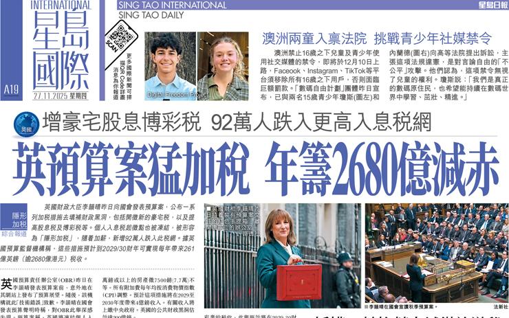 英預算案猛加稅 年籌2680億減赤 增豪宅股息博彩稅 92萬人跌入更高入息稅網