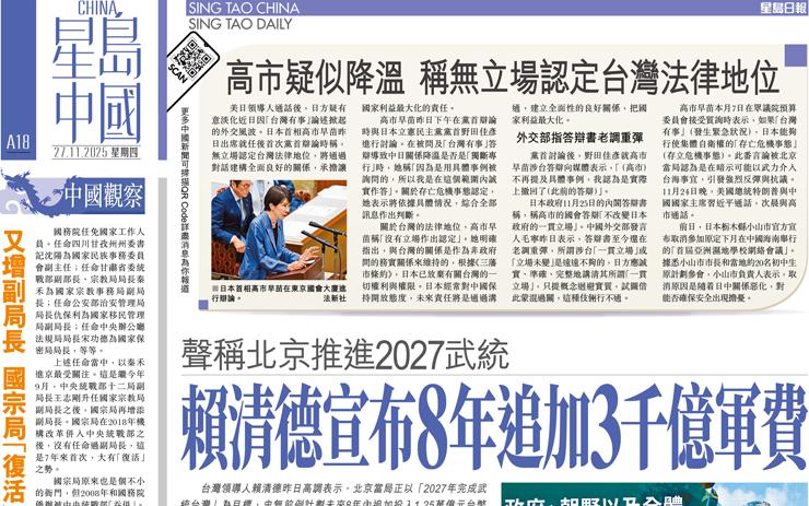 賴清德宣布8年追加3千億軍費 聲稱北京推進2027武統