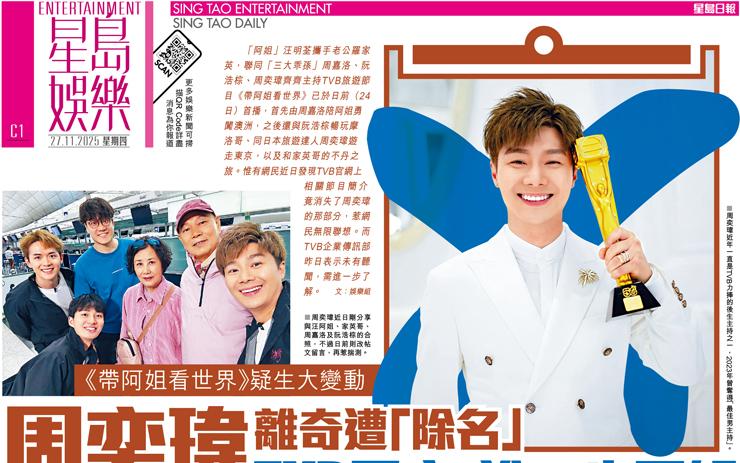周奕瑋離奇遭「除名」 TVB回應:進一步了解 《帶阿姐看世界》疑生大變動