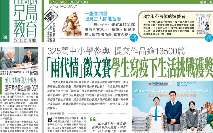 「兩代情」徵文賽學生寫疫下生活挑戰獲獎 325間中小學參與提交作品逾13500篇