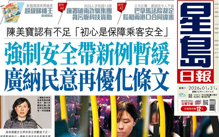 強制佩戴安全帶的新法例實施不足一周需暫緩執行。運輸及物流局局長陳美昨日宣布,經徵詢律政...