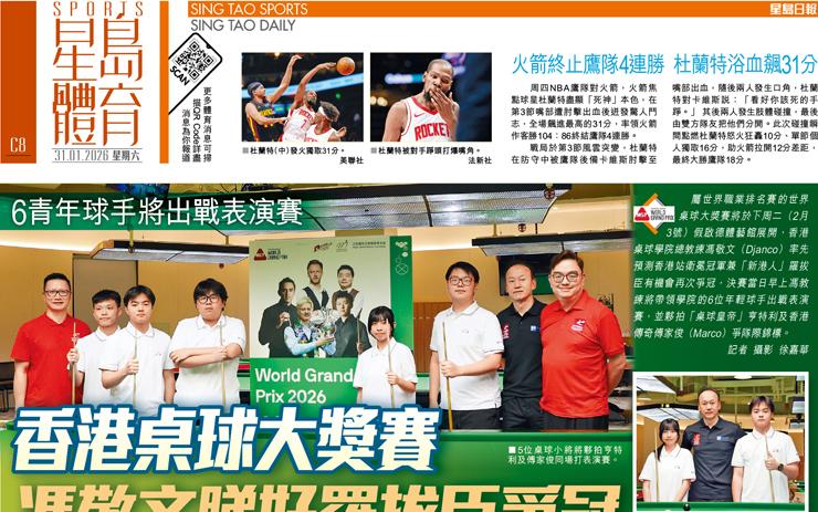 香港桌球大獎賽 馮敬文睇好羅拔臣爭冠 6青年球手將出戰表演賽