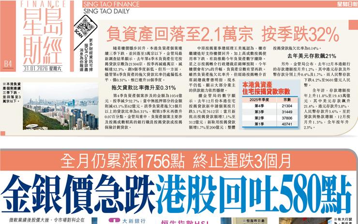 金銀價急跌港股回吐580點 全月仍累漲1756點終止連跌3個月