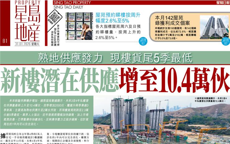 新樓潛在供應增至10.4萬伙 熟地供應發力現樓貨尾5季最低