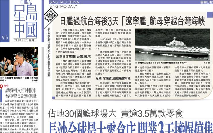 《馬關條約》131周年 日艦通台海14小時 解放軍:蓄意挑釁一錯再錯
