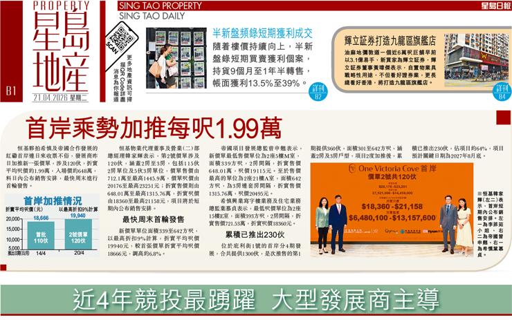 兩新盤銷情報捷共沽215伙 栢傲莊即日售罄 啟德海灣加推每呎2.19萬
