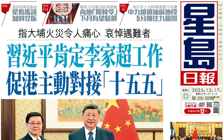 習近平肯定李家超工作 促港主動對接「十五五」 指大埔火災令人痛心 哀悼遇難者