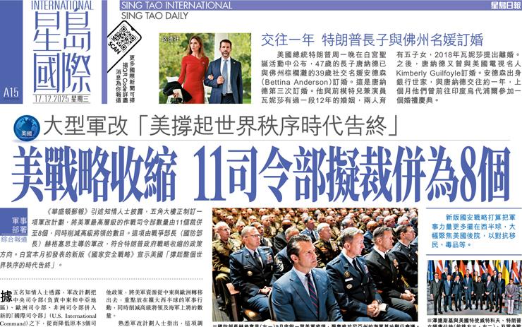 美戰略收縮11司令部擬裁併為8個 大型軍改「美撐起世界秩序時代告終」