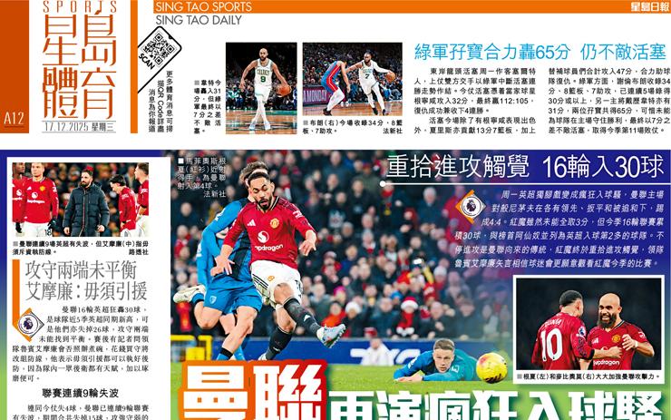 曼聯再演瘋狂入球騷 重拾進攻觸覺 16輪入30球