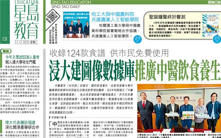 浸大建圖像數據庫推廣中醫飲食養生 收錄124款食譜供市民免費使用