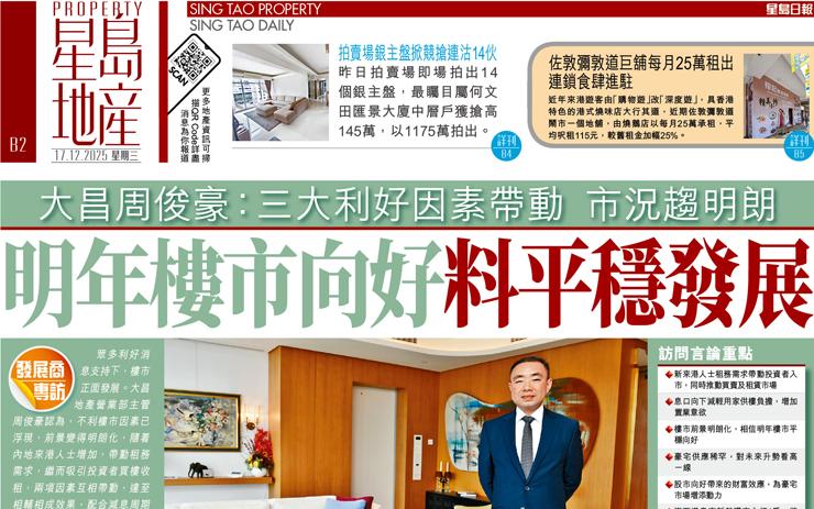 明年樓市向好料平穩發展 大昌周俊豪:三大利好因素帶動市況趨明朗