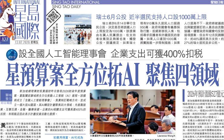 星預算案全方位拓AI 聚焦四領域 設全國人工智能理事會 企業支出可獲400%扣稅