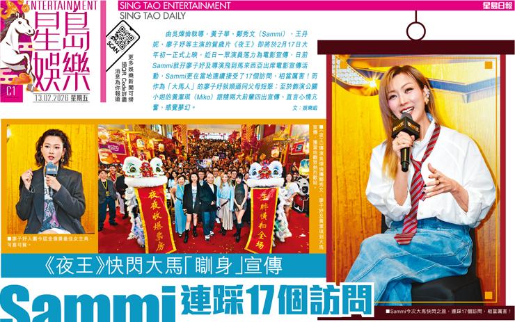 Sammi連踩17個訪問 廖子妤趁機同父母短聚 《夜王》快閃大馬「瞓身」宣傳