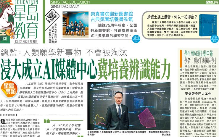 浸大成立AI媒體中心冀培養辨識能力 總監:人類願學新事物不會被淘汰