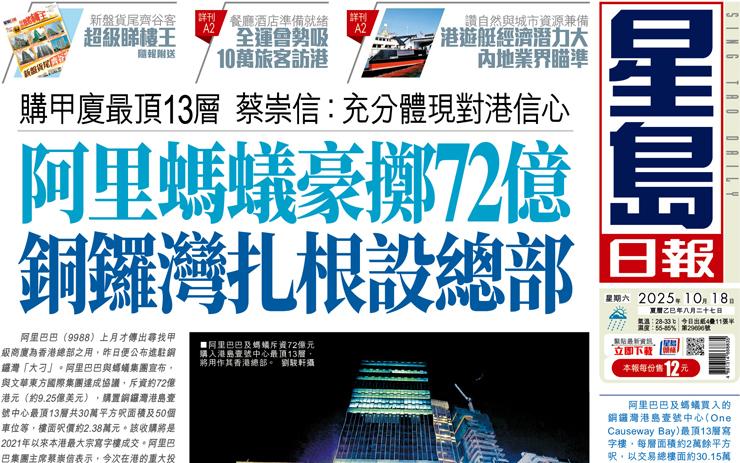 阿里巴巴(9988)上月才傳出尋找甲級商廈為香港總部之用,昨日便公布進駐銅鑼灣「大刁」。...