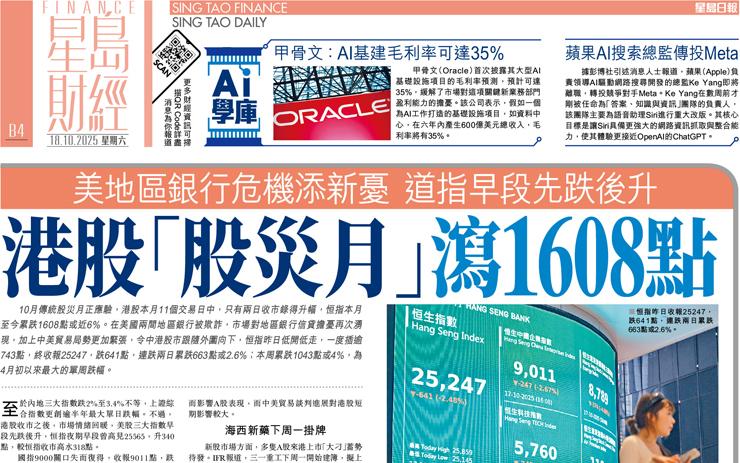 港股「股災月」瀉1608點 美地區銀行危機添新憂道指早段先跌後升