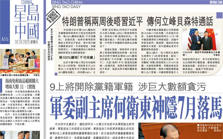 軍委副主席何衛東神隱7月落馬 9上將開除黨籍軍籍 涉巨大數額貪污