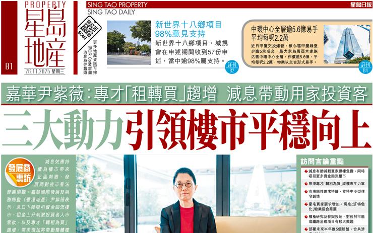 三大動力引領樓市平穩向上 嘉華尹紫薇:專才「租轉買」趨增 減息帶動用家投資客