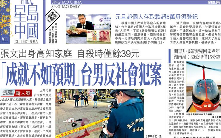 「成就不如預期」台男反社會犯案 張文出身高知家庭 自殺時僅餘39元