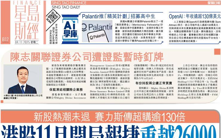港股11月開局報捷重越26000 新股熱潮未退 賽力斯傳超購逾130倍