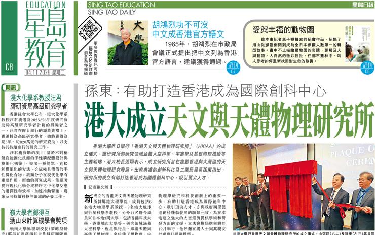 港大成立天文與天體物理研究所 孫東:有助打造香港成為國際創科中心