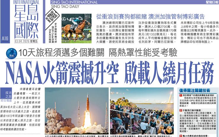 NASA火箭震撼升空 啟載人繞月任務 10天旅程須邁多個難關 隔熱罩性能受考驗
