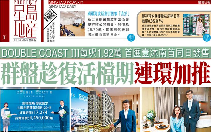 群盤趁復活檔期連環加推 DOUBLE COAST III每呎1.92萬 首匯壹沐南首同日發售
