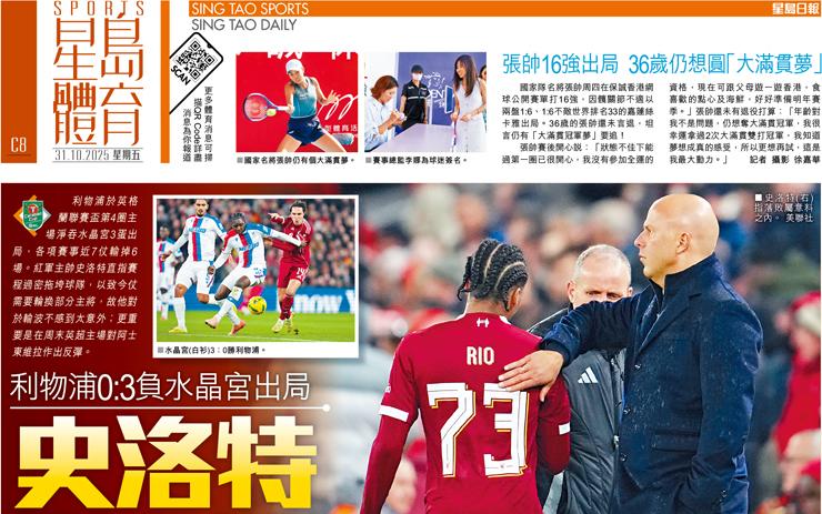 史洛特賴賽程太密 利物浦0:3負水晶宮出局