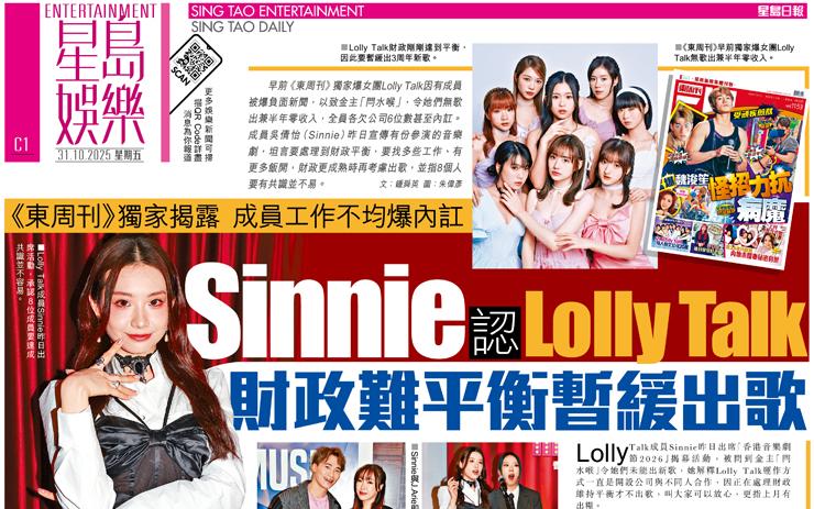 Sinnie 認 Lolly Talk 財政難平衡暫緩出歌 《東周刊》獨家揭露 成員工作不均爆內訌