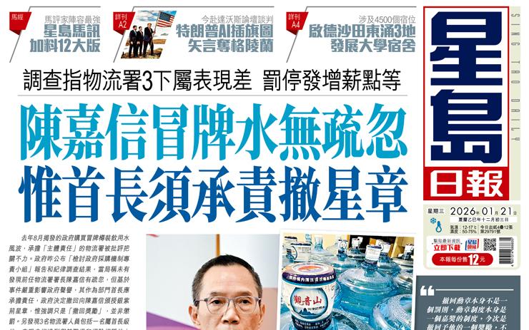 陳嘉信冒牌水無疏忽 惟首長須承責撤星章 調查指物流署3下屬表現差 罰停發增薪點等