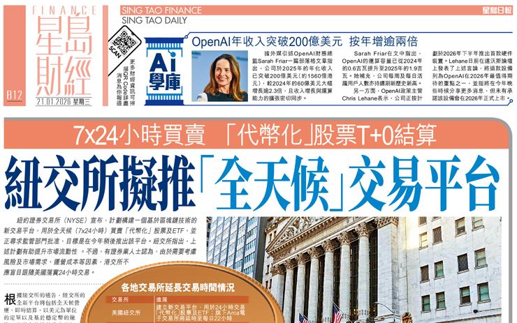 紐交所擬推「全天候」交易平台 7x24小時買賣「代幣化」股票T+0結算