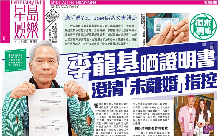李龍基 晒證明書 澄清「未離婚」指控 痛斥遭YouTuber偽造文書誹謗