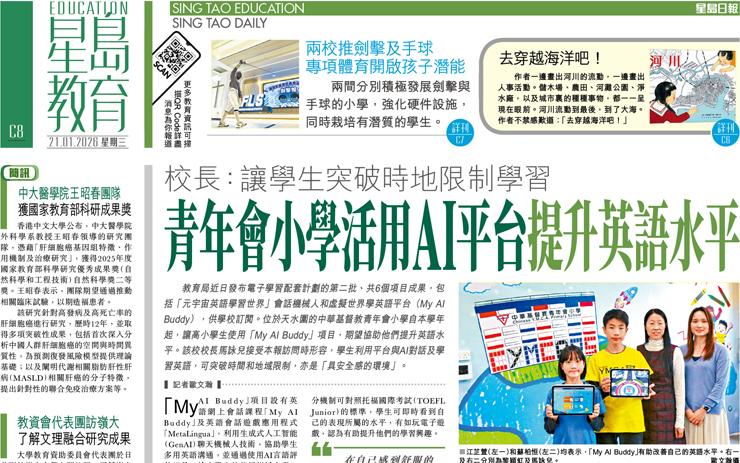 青年會小學活用AI平台提升英語水平 校長:讓學生突破時地限制學習
