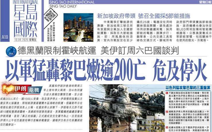 以軍猛轟黎巴嫩逾200亡危及停火 德黑蘭限制霍峽航運 美伊訂周六巴國談判