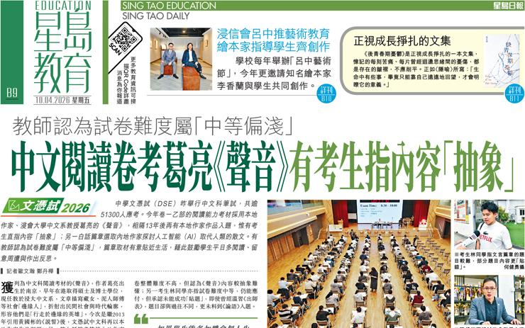 中文閱讀卷考葛亮《聲音》有考生指內容「抽象」 教師認為試卷難度屬「中等偏淺」