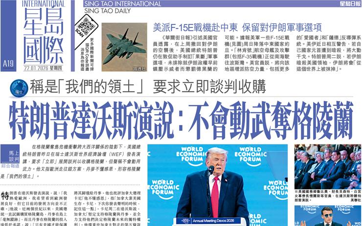 特朗普達沃斯演說:不會動武奪格陵蘭 稱是「我們的領土」 要求立即談判收購