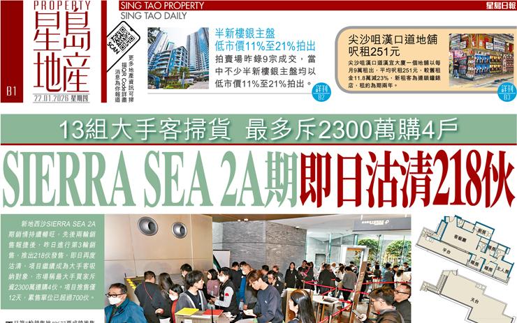 SIERRA SEA 2A期即日沽清218伙 13組大手客掃貨最多斥2300萬購4戶