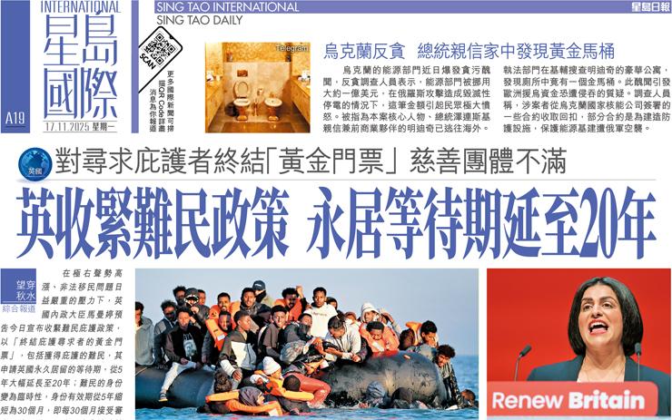 英收緊難民政策 永居等待期延至20年 對尋求庇護者終結「黃金門票」 慈善團體不滿