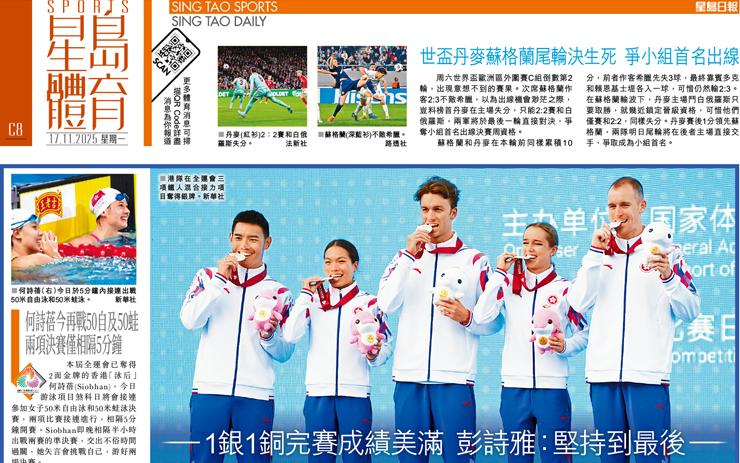 第十五屆全國運動會 香港代表團昨又多線傳來喜訊,全日共進帳2金1銀1銅...