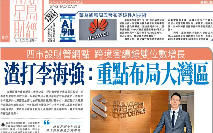 渣打李海強:重點布局大灣區 四市設財管網點 跨境客續錄雙位數增長