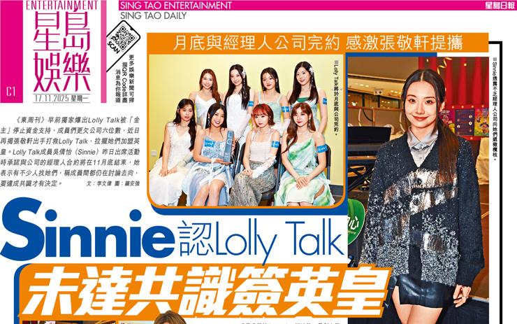 Sinnie 認Lolly Talk 未達共識簽英皇 月底與經理人公司完約 感激張敬軒提攜
