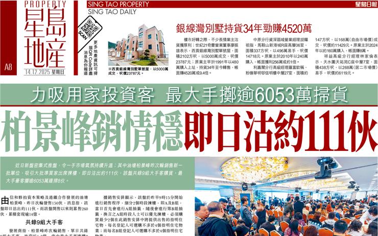 黃金海灣.珀岸單日連沽4伙每呎見1.34萬