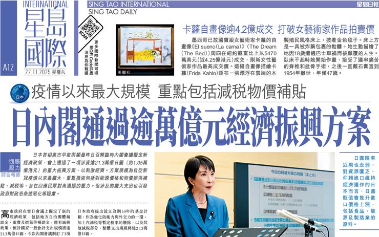 日內閣通過逾萬億元經濟振興方案 疫情以來最大規模 重點包括減稅物價補貼