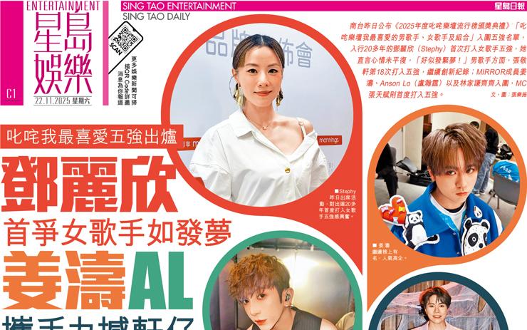 鄧麗欣 首爭女歌手如發夢 姜濤AL 攜手力撼軒仔 叱咤我最喜愛五強出爐