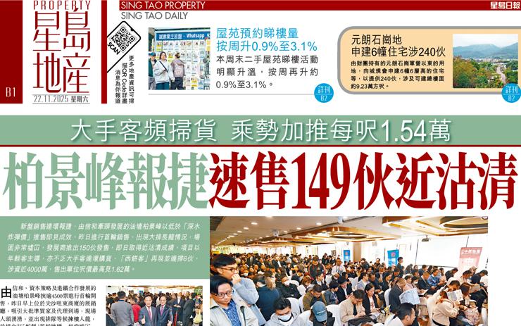 栢景峰報捷速售149伙近沽清 大手客頻掃貨乘勢加推每呎1.54萬