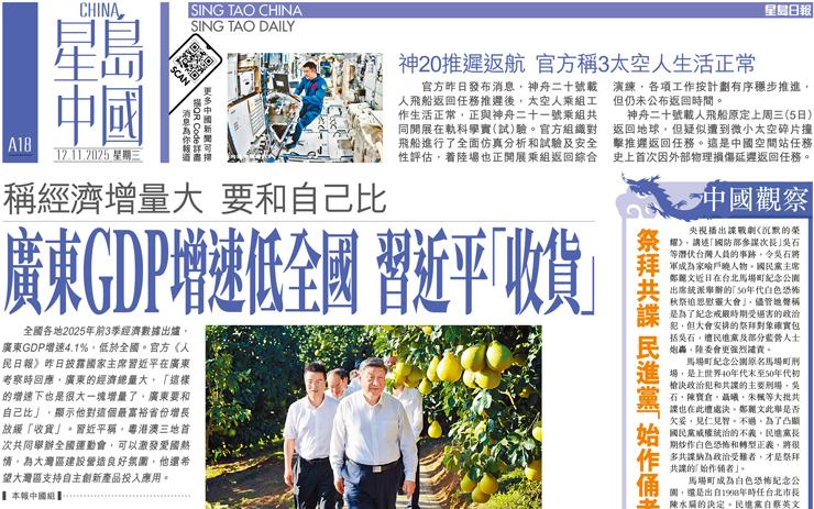 廣東GDP增速低全國 習近平「收貨」 稱經濟增量大 要和自己比