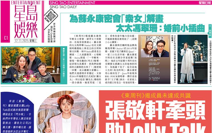 為蘇永康密會「索女」解畫 太太馮翠珊:婚前小插曲